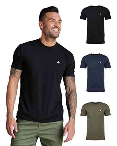 INTO THE AM Men's Fitted Crew Neck Logo Basic Tees 3-Pack - Modern Fit Fresh Classic Short Sleeve T-Shirts for Men (Black/Navy/Olive Green, X-Large)