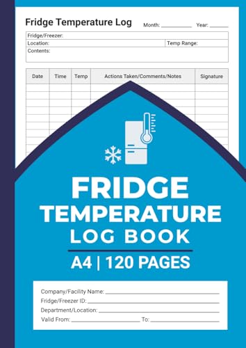 Fridge Temperature Log Book: Fridge and Freezer Temperature Record Book | For Restaurants, Catering Services, Supermarkets, Kitchens, Food and Medication Storage Facilities | A4 Paper | 120 Pages