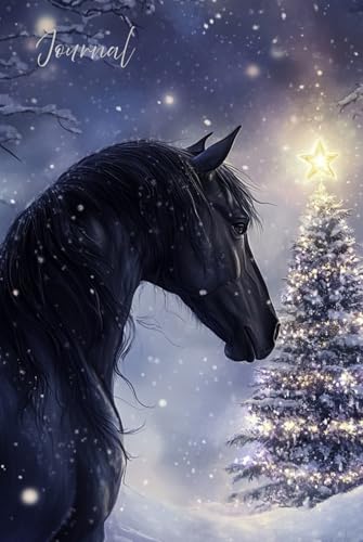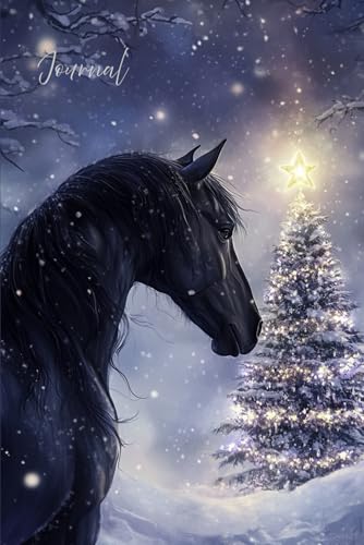 Winter Nights: A Magical Holiday Journal with a Realistic Black Friesian Horse and Glowing Christmas Tree in a Snowy, Starry Wonderland