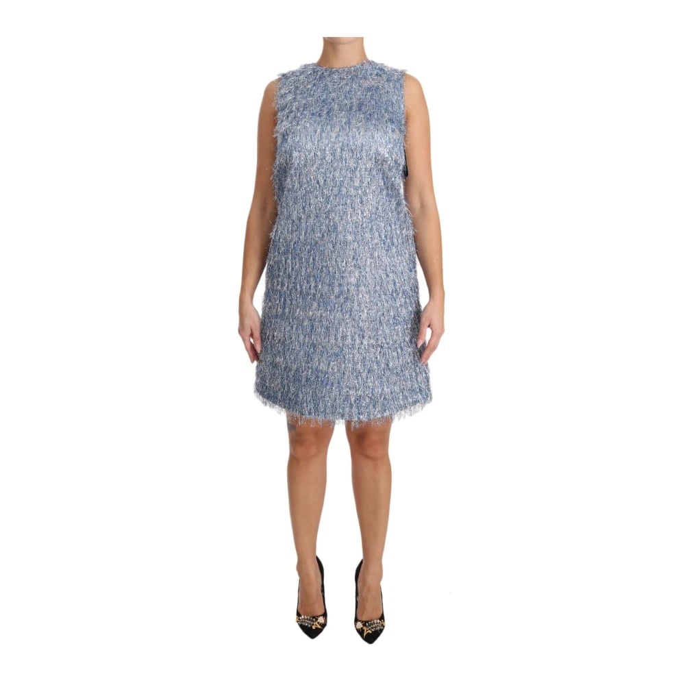 Dolce & Gabbana, Klänningar , Dam, M, Polyester, Metallic Fringe Mini Klänning Ärmlös ALine