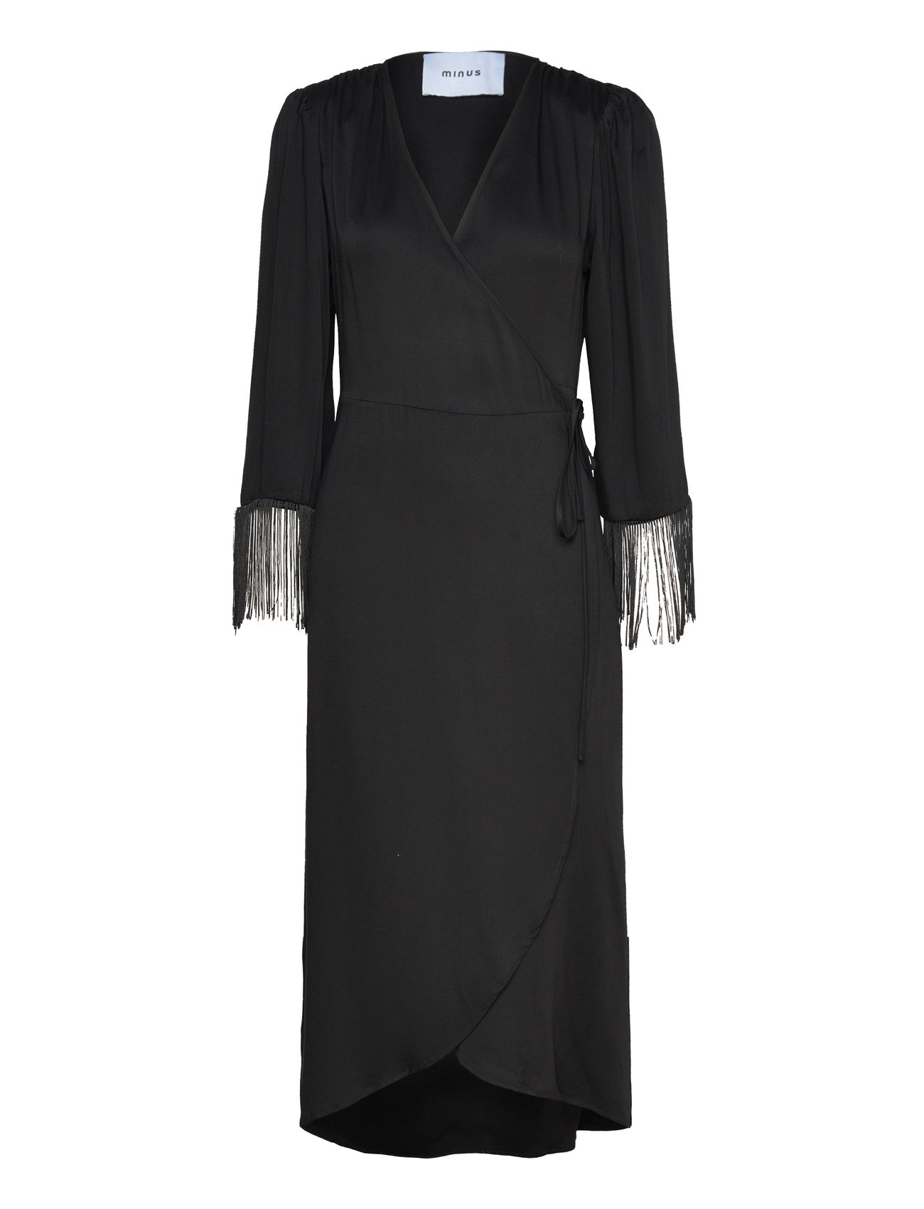 Msjassie Solid Fringe Sleeve Dress Black Minus