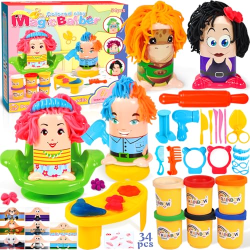 JEDWKFA Knette Set Knådverktyg för barn, frisör set barn, plastinuppsättning för barn, knådning deguppsättning för barn, frisör lek med 6 burkar, plastin, gåva för från 3