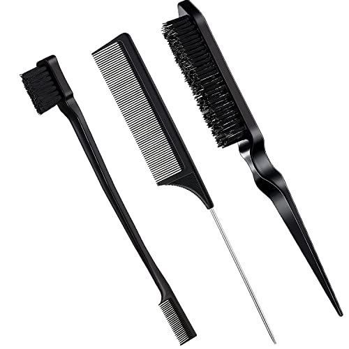 Edges borste, 3 stycken Sleek Bun-borstar för Sleek fläta, Witbicg Teasing Brush hårborste borstkam baby hår borste touperingsborste babyhår lämplig för frisör dam baby barn (svart)