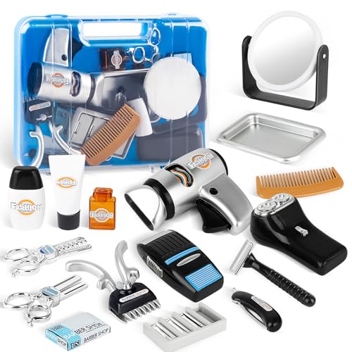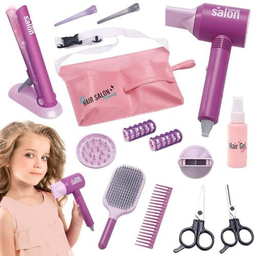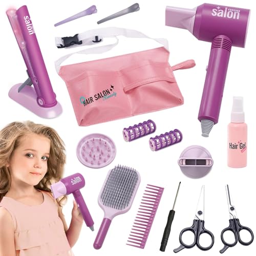 DAZZTIME Frisör- och sminkväskor, skönhetsset för flickor, 14 stycken barnsminkset för flickor, spela frisörleksaksset med hårtork, frisörset för barn, leksaker för barn från 3 år