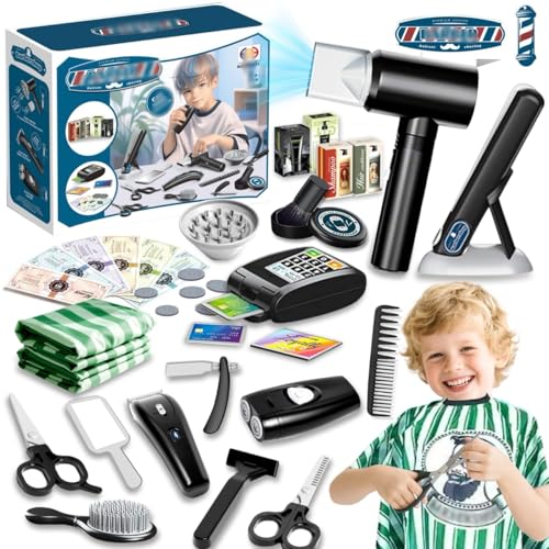 PIIMNT 35 st frisörhuvud barn, frisörset för barn, frisörset med hårtork, rakapparat, hårplattång, hårstyling, tillbehör, frisör leksaker, rollspel