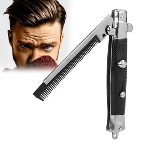Vikbar kam för män | rostfritt stål | Fjäderknivkam skägg kam | professionell stylingkam | frisör styling verktyg | frisyrkam