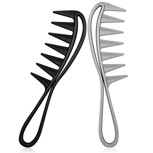 AOOWU Breda tandkammar, 2-pack breda tand hajkammar, stora tänder hajkammar, antistatiskt lockigt hår frisörkam, afrohår kam salong frisörkam för hårstyling hår utredning
