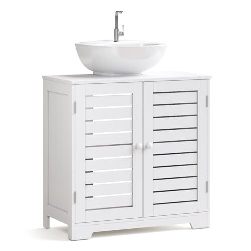 Mondeer Under handfat, trä fristående badrumsförvaring med 2 dörrdörrar och 2 hyllor, 60 x 60 x 30 cm, vit
