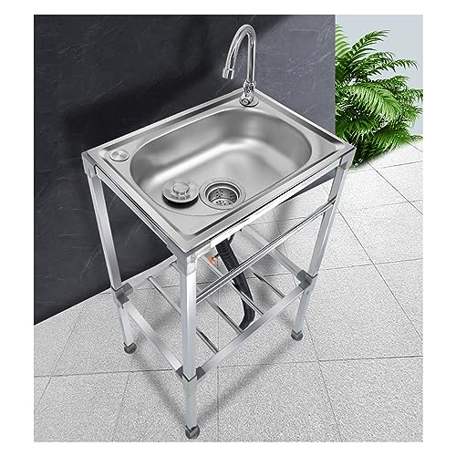 YZJJ Fristående köksvask – rostfritt stål enkel skål handfat för inomhus utomhus, tvätt handfat med arbetsbänk och kran, kraftigt badkar för bakgårdsgarage, bärbar handtvätt