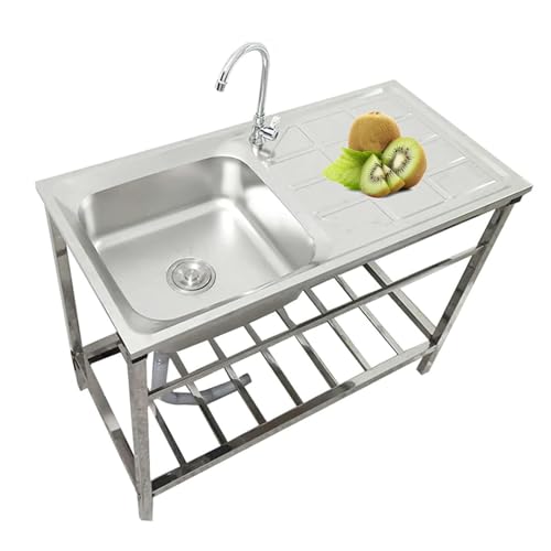 Handfat för kommersiellt bruk, fristående utekök Camping diskbänk, tvättstuga, bärbar diskbänk i rostfritt stål 304 för att diska, m/arbetsbänk kran avloppsbräda, för tvätt, garage (Color : Single c