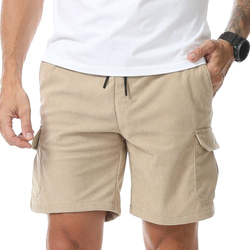 Jolicloth Korta byxor herr Corduroy shorts med fickor elastisk midja dragsko cargo sommar fritidsshorts, blå, M