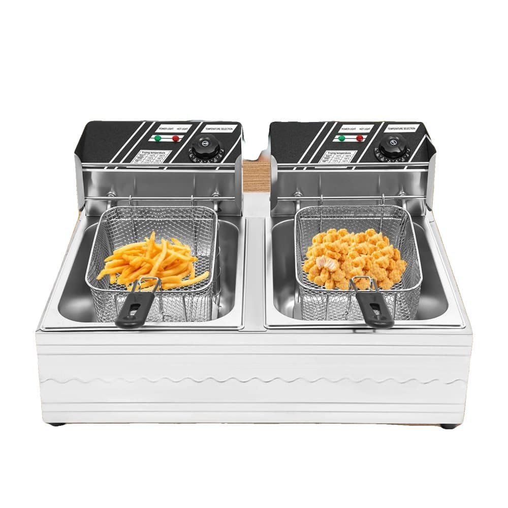 Fritös, 12L kapacitet, dubbla tankar, justerbar temperatur 60-200℃, fristående design, 5KW total effekt