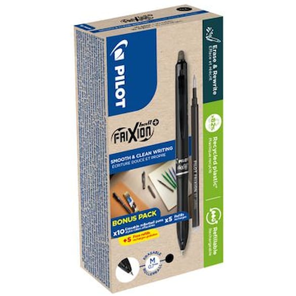 Kuglepen Pilot Frixion Plus 0,7Mm Sort Bulk 10+10 82% Genanvendt