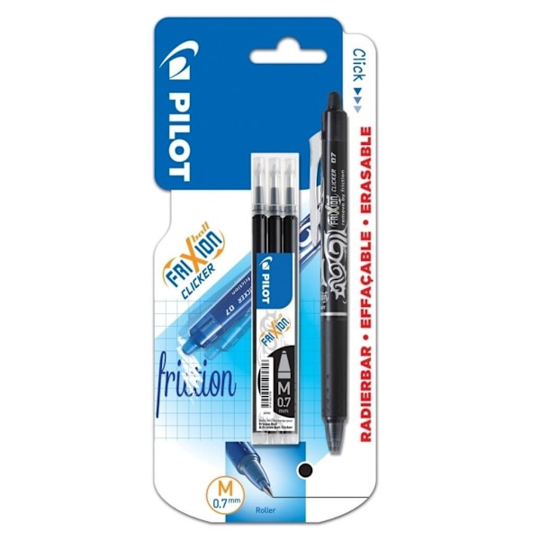 PILOT - FriXion Ball Clicker 07 + 12 refills - raderbar termokänslig bläckpenna - infällbar och påfyllningsbar rullpenna - blå - medium spets