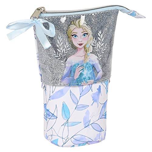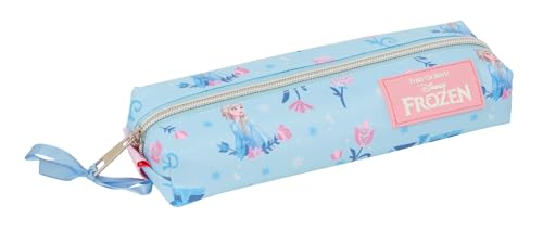 Frozen barn skolväska - blå färg - dragkedja - 12,5 x 6,5 x 19,5 cm - trefaldigt fack - innehåller tillbehör - originalprodukt designad i Spanien, Ljusblå, Pennfodral
