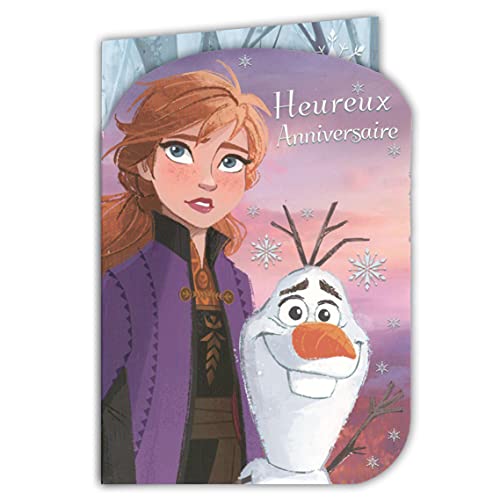 200003 Födelsedagskort med Disney Frozen 2 snödrottningen Elsa prinsessa Anna berg Kristoff ren Sven snögubbe Olaf - med lila kuvert 12 x 17,5 cm