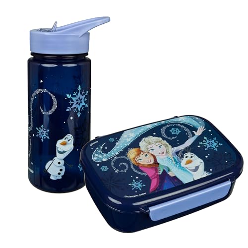 Scooli - Disney Frozen barnporslin, presentset – set bestående av matlåda och vattenflaska – perfekt för skolan eller dagis – för barn från 4 år – tillverkad av plast – BPA-fri