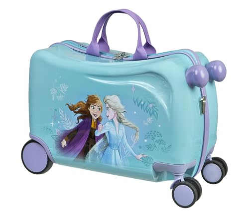Undercover – Disney Frozen Ride-on Trolley – Barnbagage att sitta uppifrån – kan belastas upp till 50 kg – med praktiska bärhandtag – stabil resväska, Ljusblå, Trolley med hårt skal med svänghjul