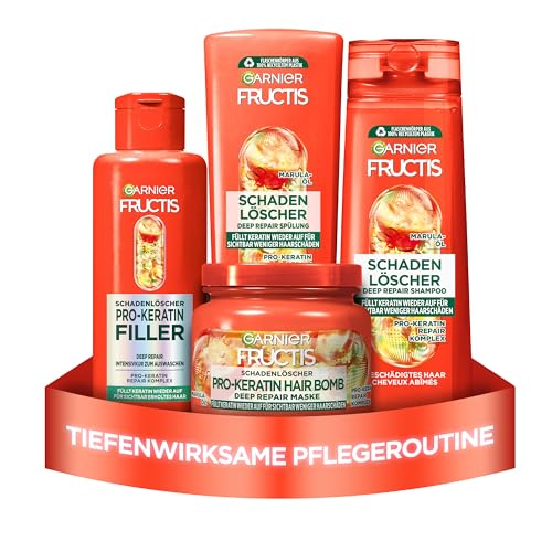 Garnier Fructis Skadesläckare hårvårdsset för skadat hår, med pro-keratin och marulaolja, schampo (250 ml), balsam (200 ml), hårbehandling (200 ml), mask (320 ml), 4 delar