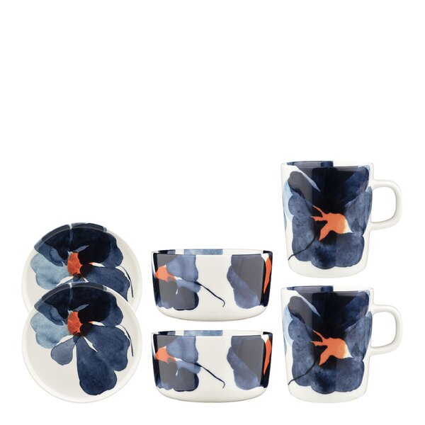 Marimekko - Valssi frukostset 6 delar vit/blå/orange