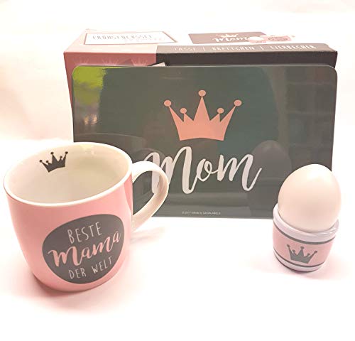 infinite by GEDA LABELS frukostset 3-delad ”mamma” frukostset, melamin, rosa/grå, 23,5 x 9,5 x 14,5 cm, 3 enheter