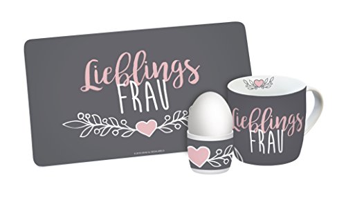 infinite by GEDA LABELS Favoritkvinna 3-delat frukostset, melamin, grå/rosa, 24 x 9,7 x 14,4 cm, 3 enheter