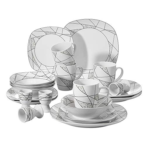 VEWEET, Serena®, bordsservis av porslin i 20 delar vardera med 4 äggkoppar, kaffekoppar, 350 ml, frukostskålar, desserttallrikar och mattallrikar för 4 personer/restaurang/familj