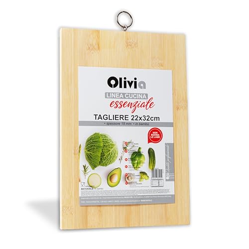 IPEA Rektangulär skärbräda i trä med metallöljetter för grönsaker, frukt, salami - 32 x 22 cm - Multifunktionell skärbräda för skärning och servering av aptitretare, bröd, ost - bambubricka