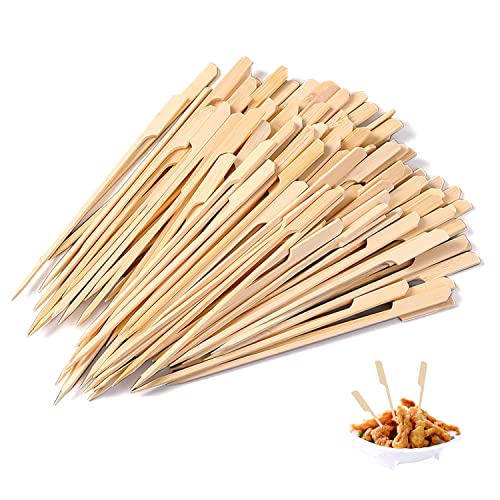 YSDYY 200 st bambuspettpinnar, grillpinnar i träspett, kebabs, miljövänliga träspett, grillpinnar i trä, festnödvändigheter för grill, frukt, tårtdekoration (12 cm)