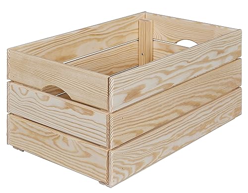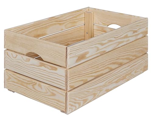 Inter Link - Trälåda - Stapellåda i massivt trä - Förvaringslåda, För frukt, grönsaker, vin, trädgård, badrum, lekrum - Platsbesparande, praktisk - 51 x 31,5 x 23cm Valloni M