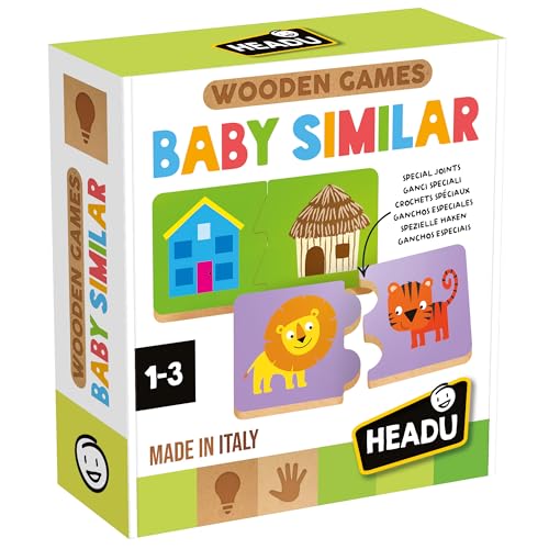 HEADU - Wooden Baby Similar Game - arkivera och jämför när du spelar | Pedagogiskt spel i trä 1–3 år, djur frukt och fordon, första klassificeringarna, presentidé, tillverkad i Italien