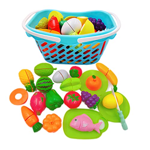 TLHWIN Köksleksaksset, låtsas skära grönsaker frukt mat leksak för barn flickor pojkar, rollspel leksaker gåva med korg, pedagogiskt spelgåva för åldrarna 2 och uppåt