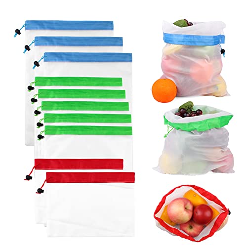 TSHAOUN 10 st återanvändbara påsar i mesh, grönsakspåsar med dragsko, tvättbara, för frukt, grönsaker, matvaror, shopping, förvaring och leksaker och stormarknads shoppingförvaring, 3 olika storlekar,
