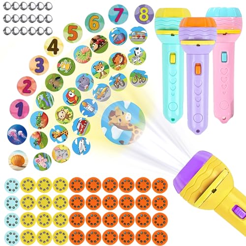 4 st ficklampor, projektor för barn, diaprojektor, leksaker med 80 djurmönster, dinosaurier, transportfordon, frukt och siffror, ficklampa, projektor, gåva för tidig barn