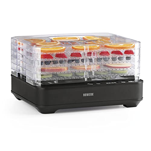 N8WERK Dehydrator | Temperaturreglering från 35-70 °C | Digital timer (upp till 24 timmar)| Dehydrator med 5 galler| Höjd justerbar | Tillagning av frukt och grönsaker för att bevara näringen