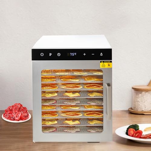 10 våningar, mattork, kött och frukt, justerbar temperatur mellan 86–40 grader, 1–24 timmars timing, 10 rostfritt stål, tork, grönsakstork