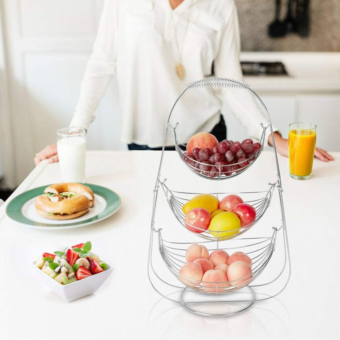 Fruktkorg med Tre Korgar - Förkromat Stål