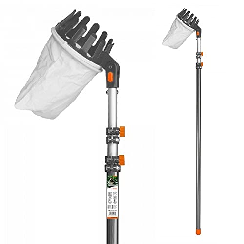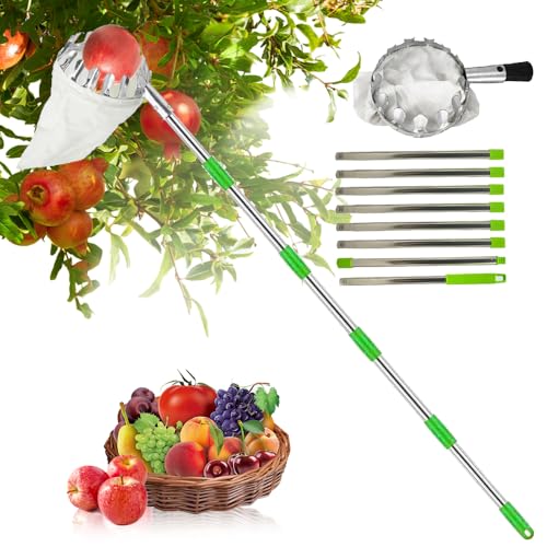Fruktplockare med teleskophandtag 2,0 m, teleskopisk fruktuppsamlare av rostfritt stål, fruktplockare, äppelklor, fruktplockare, trädgårdsverktyg persika träd diameter 145 mm