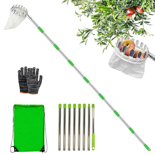 Fruktplockare, äppelplockare, 4,2 m fruktplockare med stjälk, körsbärsplockare med bomullspåse, plockningshjälp lätt att installera, justerbar skarvförlängning fruktplockare stång