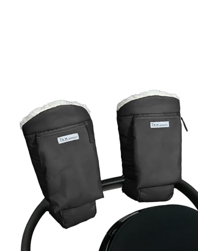 7AM Enfant barnvagn Warmmuffs handskar – anti-frys barnvagn vantar för styre, vattenavvisande handvärmare muff för kallt väder, plyschfodrad (svart Oslo)