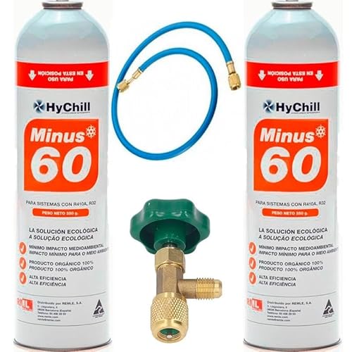 REPORSHOP 2 x Minus 60 350 Gr gasflaskor + ventil + ersättningsslang R32, R410A ekologisk frys