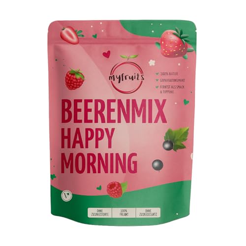 myfruits® Bärblandning – Happy Morning – 300 g – blandning av frystorkade frukter – utan tillsats av socker – jordgubbsskivor, hallon, svarta vinbär