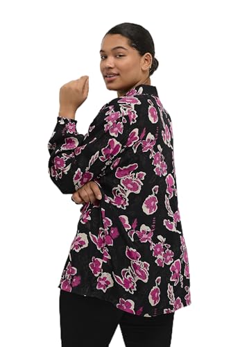 Kaffe Curve Plus-storlek damskjorta knapp upp normal passform tryckt långärmad dam, Fuchsia röd blomma tryck, 42 stor