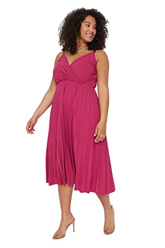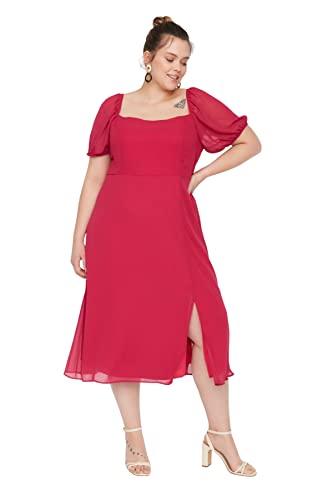 Trendyol Kvinnor Plus Size Midi A-linje Anpassad Vävd Plus Size Klänning, fuchsia, 48 SE/Plus