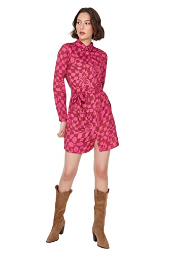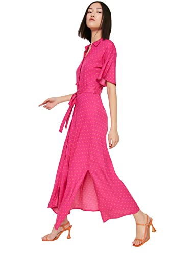 Trendyol dam kvinna normal passform skjorta krage vävd klänning, fuchsia, 62 SE