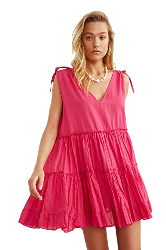 Trendyol Kvinnors knapp bindning detaljerad strandklänning klänning, fuchsia, 42