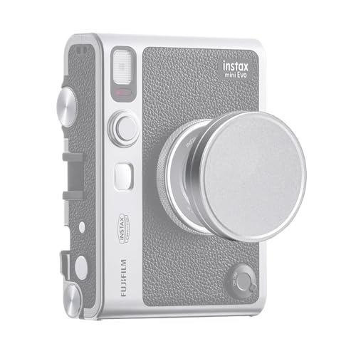 MUZIRI KINOKOO Instax Mini EVO linskåpa, kompatibel med Fujifilm Fuji Instax Mini EVO Instant Camera - aluminiumlegering dammtät linsskydd med flockning intern - silverfärg