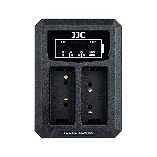 JJC USB Dual Batteriladdare för Fujifilm X-E4 X-PRO3 X-PRO2 X-PRO1 X-S10 X-H1 X-T3 X-T2 X-T1 X-T30II X-T30 X-T20 X-T10 X-A5 X-T100 X100F X100VI X100V Kameror Ersätter Fuji NP-W126 / NP-W126s