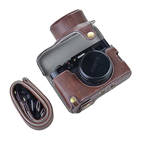 Rieibi X100V kameraväska, vintage läderfodral för Fuji Fujifilm X100V digitalkamera, skyddsfodral med rem och greppfodral, Brun, Skönhetsväska