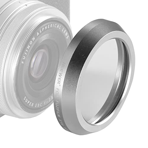 JJC linsskydd i aluminium med lock för Fujifilm Fuji X100VI X100V X100F-kameror, ersätter Fujifilm LH-X100 linshuva – kompatibel med 49 mm filter – silver